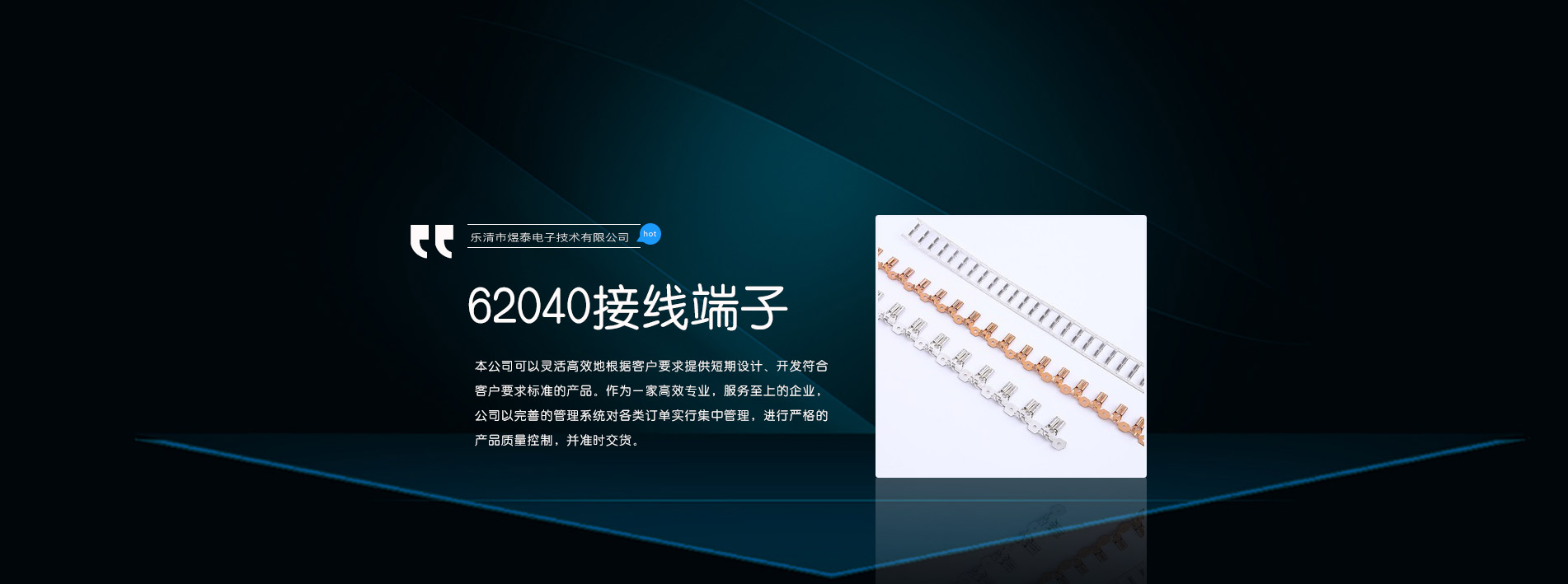 温州煜泰电子技术有限公司是一家专业从事漆包线刺破端子等相关产品的开发、生产、加工企业,具有雄厚的经济技术实力及长远宏伟的发展战略目标,公司以“优质高效,尊信守约,客户至上”为发展方针;客户的满意是我们的追求,客户的事情无小事是我们的许诺!我们本着诚实做人、认真做事的原则,以精良的服务为基础,凭借专业的技术,优秀的品质,致力为客户提供具有性价比的产品,使客户的采购工作更轻松,生产更省心,力争与客户达成长期合作关系!